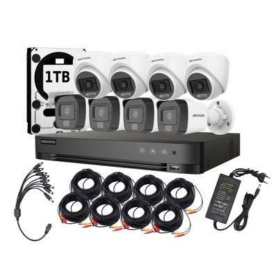 Grabadora DVR Hybrid (5 en 1) 8 Canales 3K (5MP) + 4 cámaras bullet 2MP + 4 cámaras Domo 2MP con TVI Audio & Dual Light