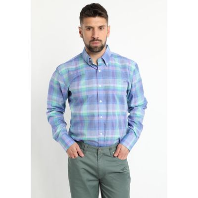 Camisa Fantasia Premium Manga Larga Boton Cuello Celeste | Falabella