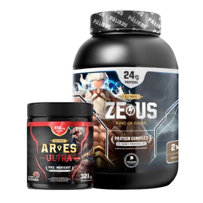 Pack Whey Protein ZeusComplex 1 kg + Creatina + pre entreno Chocolate.