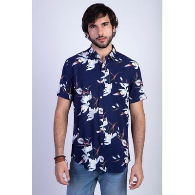 Camisa Estampada Flores Fj Navy