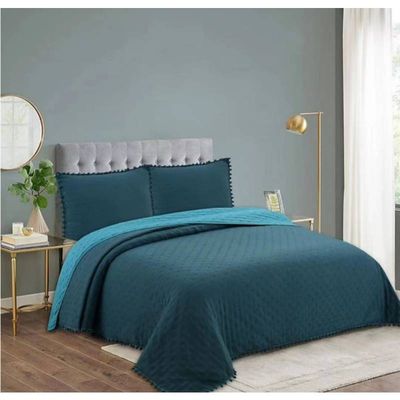CUBRECAMA KING TURQUESA CON POMPONES DE VERANO ALGODON GSOL. | Falabella