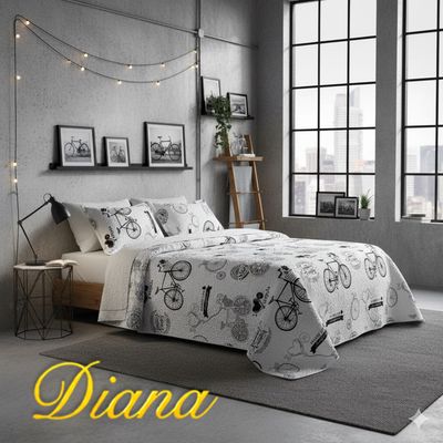 CUBRECAMA QUILT DE VERANO 2 PLAZA DISEÑO MODERNO CON ESTAMPADO DE BICICLETAS | Falabella