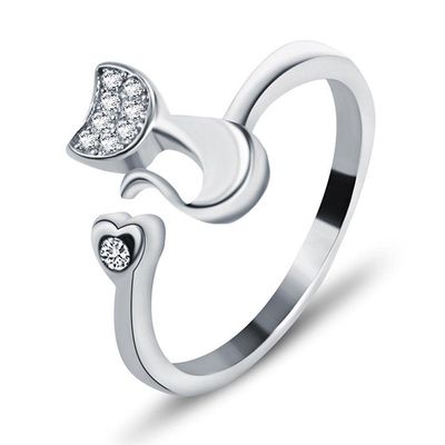Anillo Gato Con Circon Plateado Ajustable | Falabella
