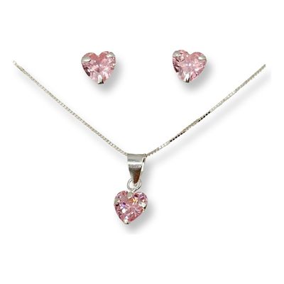 Conjunto Collar Aros Colgante Corazon Circon Rosado Plata925 | Falabella