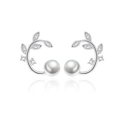Aros Perla y Hojas Circones Plateado | Falabella