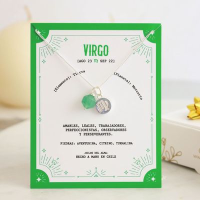 Collar de Plata 925 con piedra natural aventurina signo virgo | Falabella