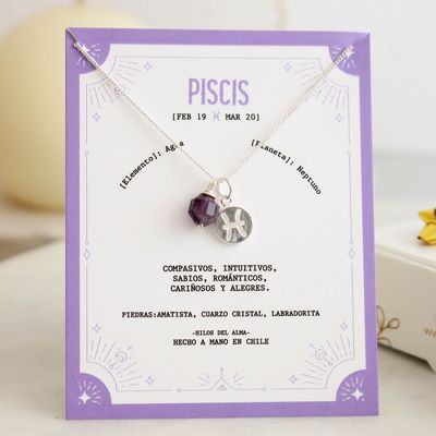 Collar de Plata 925 con piedra natural Amatista del signo Piscis | Falabella