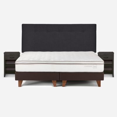 Cama Europea Rosen 2 Plazas Ergo T + Respaldo + 2 Veladores Grafito
