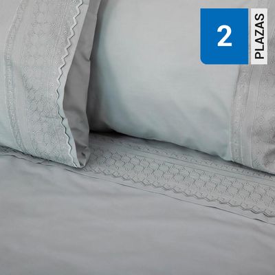 Juego sábanas 2 plazas 144H broderie Amalia gris