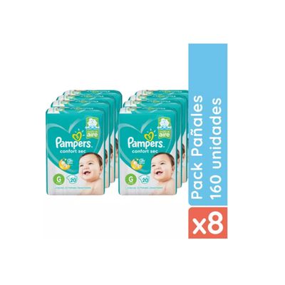 Pack X8 Pañales Pampers Confort Sec G 160 Pañales