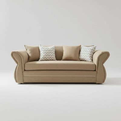 Sofá Grecia 3 cuerpos Tela Beige Repelente a Líquidos Flobal