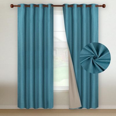 Cortina Blackout 100% 2 Paños Textura Lino - Azul petroleo | Falabella