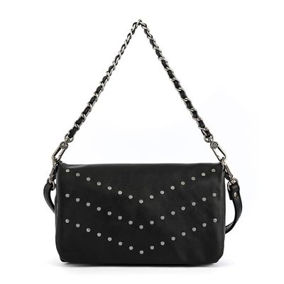 Cartera Bandolera Humana Ceci Tachas Cierres Negro