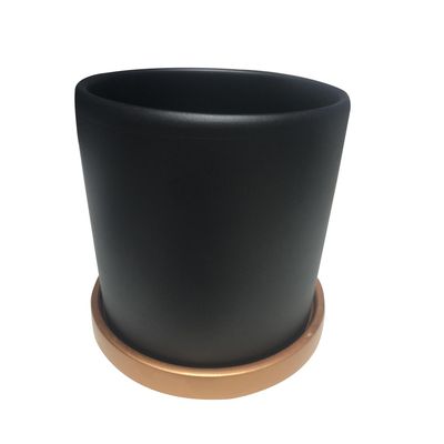 Macetero Cilindro y Plato de Arcilla 18x18 cm Grafito y Dorado | Falabella