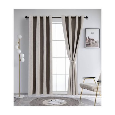 Cortina beige claro 100% black out goma GRIS con argolla 5 CM 2 paños | Falabella