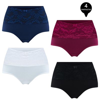 Pack de 4 Calzon Tiro Alto Algodón con Encaje | Falabella