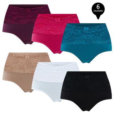 Pack de 6 Calzon Tiro Alto Algodón con Encaje | Falabella