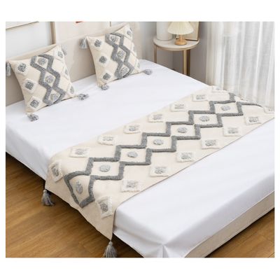 Set Piecera Boho Zig Zag Crudo y Gris 210x60 y 2 Fundas 45x45 | Falabella