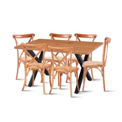 Mesa Color Madera y Metal Cross 140x90 + 6 Sillas Crossback Madera Rattan Natural | Falabella