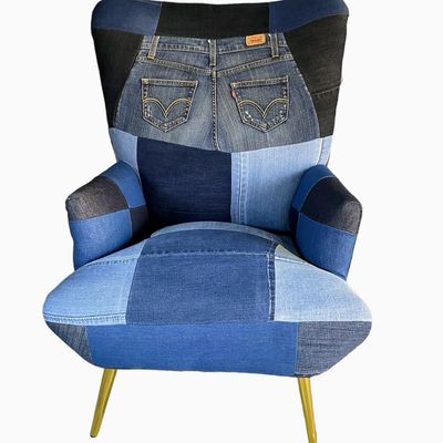 Poltrona respaldo alto tapiz Patchwork Jeans reciclados | Falabella