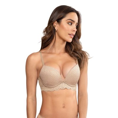 Sostén doble realce escote profundo elaborado en encaje 71345 Café Claro | Falabella
