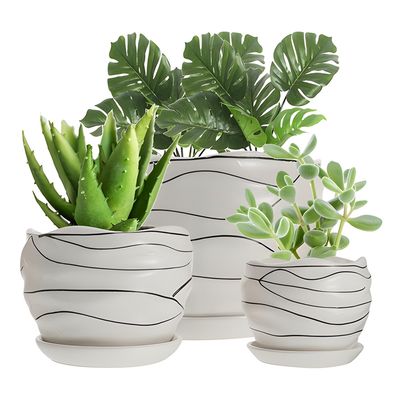 Set De Tres Maceteros Blancos Redondos Con Líneas Negras | Falabella