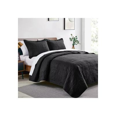 Importclick - Cubrecama Quilt Reversible Queen 228X228 Cm Más Fundas Almohada Negro