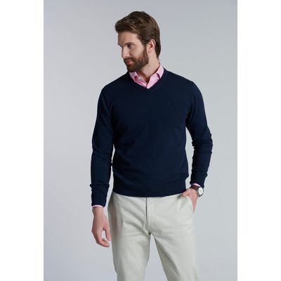 Sweater V Neck Solido F Navy