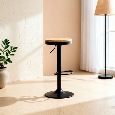 Taburete Aron Altura Regulable Con Asiento De Madera Negro | Falabella