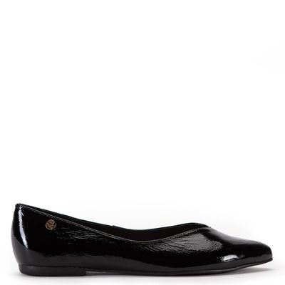 Ballerina de cuero charol negro, ideal para atuendos formales y casuales.