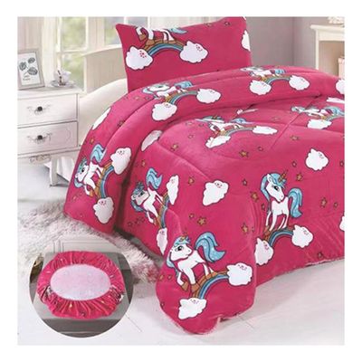 Cobertor Chiporro y Sabana Bajera Polar Infantil 1.5 Plazas Fucsia Unicornio | Falabella