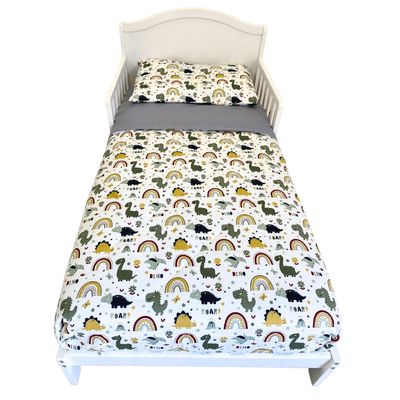 SET ROPA PARA CAMA DE TRANSICIÓN DINO FELIZ 100% ALGODON DE 4 PIEZAS | Falabella