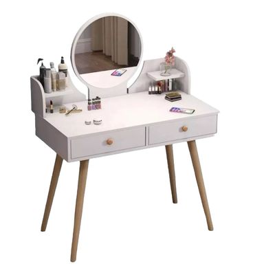 Click Ventas - Mesa De Noche Tocador De Madera 2 Cajones Espejo Led Y Banco