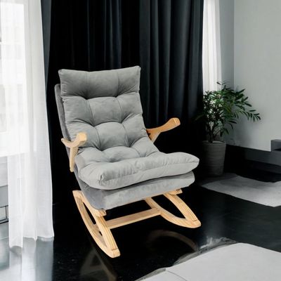 SILLA MECEDORA COQUETTE CON APOYA BRAZO GRIS FELPA. | Falabella