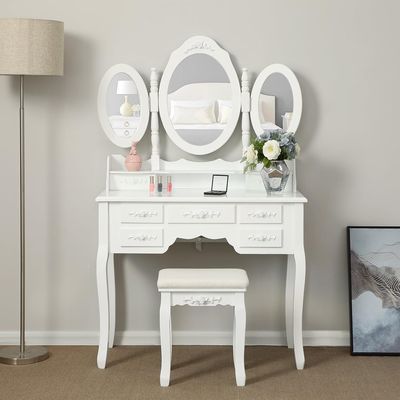 Tocador con 3 Espejos Plegables y Cómoda 7 Cajones Blanco | Falabella
