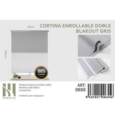 Cortinas Roller Blackout Doble jaspeada 180 cm x 200 cm Gris | Falabella