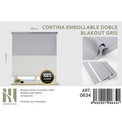Cortinas Roller Blackout Doble 180 cm x 200 cm Gris | Falabella
