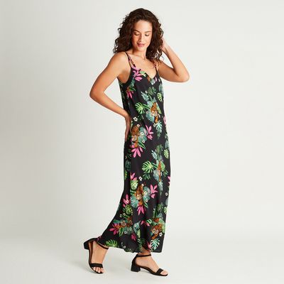 Vestido Maxi Negro Estampado Tirantes - Negro | Falabella