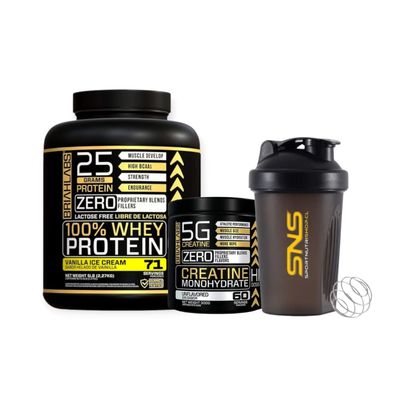 PACK PROTEINA 100% 5LBS VAINILLA + CREATINA 300GR + SHAKER - | Falabella