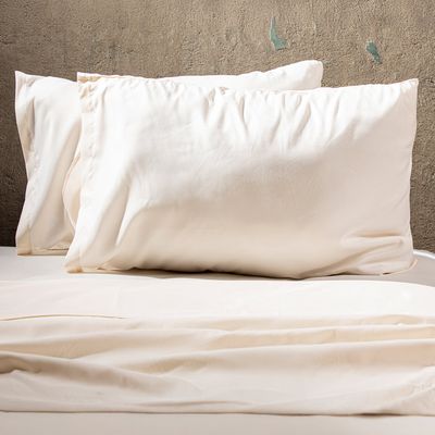 JUEGO DE SABANAS 100% ALGODÓN 200 HILOS MARFIL LISAS 2P
