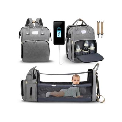 Mochila Maternal 3 En 1 Pañalera Cuna Y Mudador Portátil Gris Bebesit