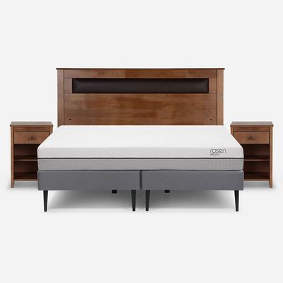 Cama Rosen Pratta 2 Plazas Completa + Muebles Ferrara Café