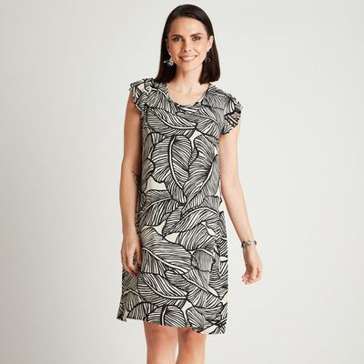Vestido Corto Crudo Manga Corta Estampado Cuello Redondo | Falabella