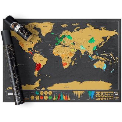 Mapa Del Mundo Raspado En Oro Negro Para Raspar Viajeros | Falabella