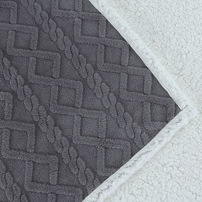 FRAZADA JACQUARD SHERPA GRIS 2 PLAZA | Falabella