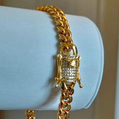 Pulsera ORO LAMINADO 18K Tejido CUBANA BROCHE CAJÓN Con brillantes | Falabella