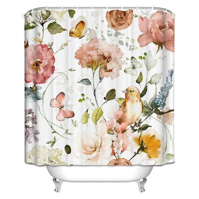 Cortina Baño Impermeable Paraíso Coral más 12 Ganchos | Falabella