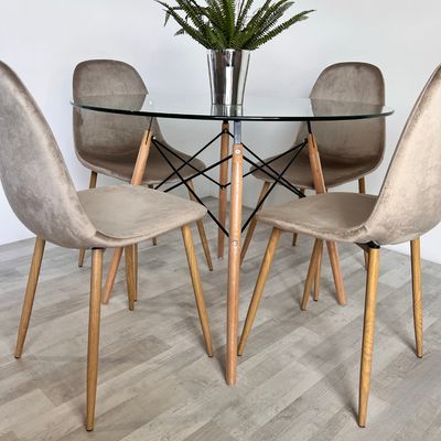 Pandalino - Comedor Mesa Redonda Equiz 100Cm + 4 Sillas Rubik Beige Velvet