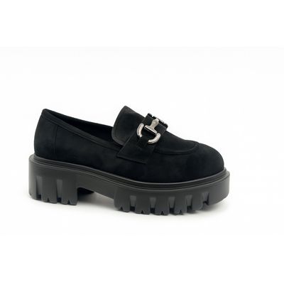 Mocasines Mujer Plataforma Gamuza Negro Suela Chunky | Falabella