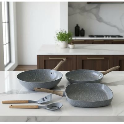 Genérico - Batería De Cocina De 5 Piezas, Antiadherente, Cerámica Marmolada